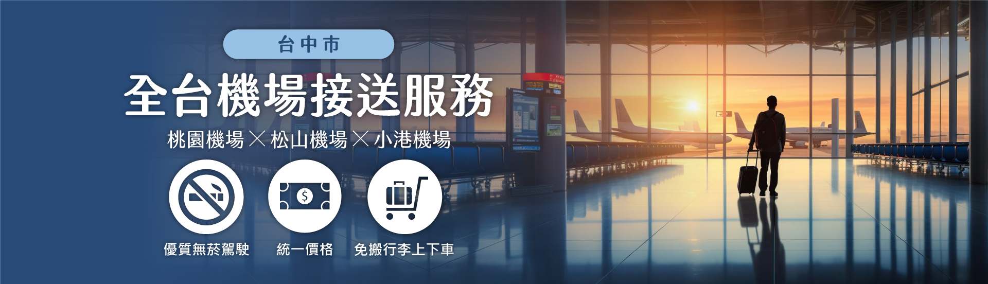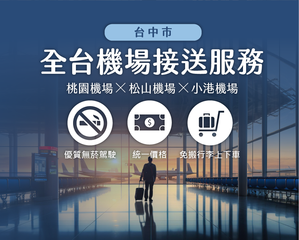 台中機場接送24 ⼩時全年無休服務