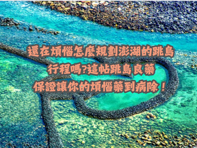 看完飛鴿接送為大家整理的資料,相信大家下次到了澎湖,不會再只有澎湖本島的行程可以規劃了吧?周圍的離島也還等著大家一起去探索,就在這個夏天,給自己一趟說走就走,說飛就飛的澎湖跳島旅行吧!